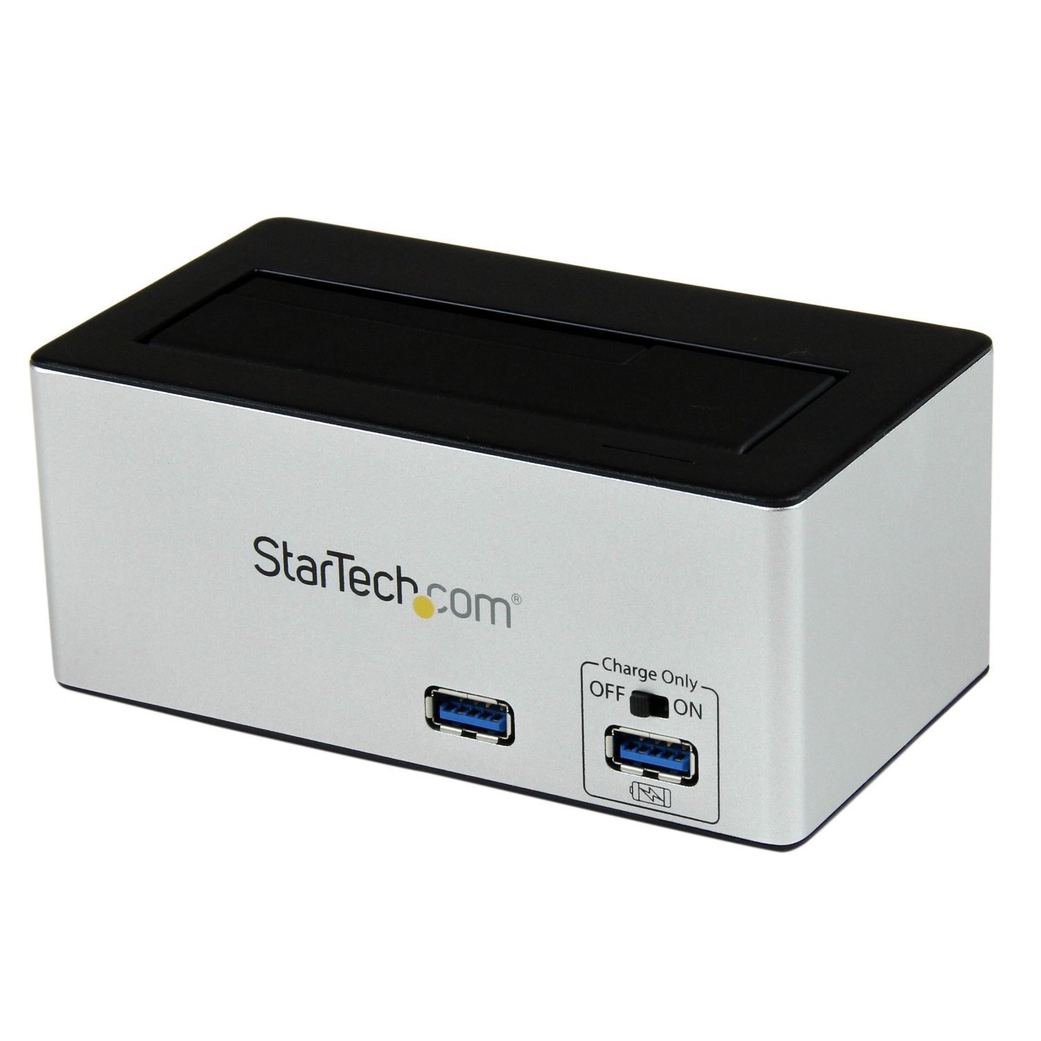Ìomhaigh: The StarTech.com SDOCKU33HB docking station, showing the top-loading drive bay and front panel.