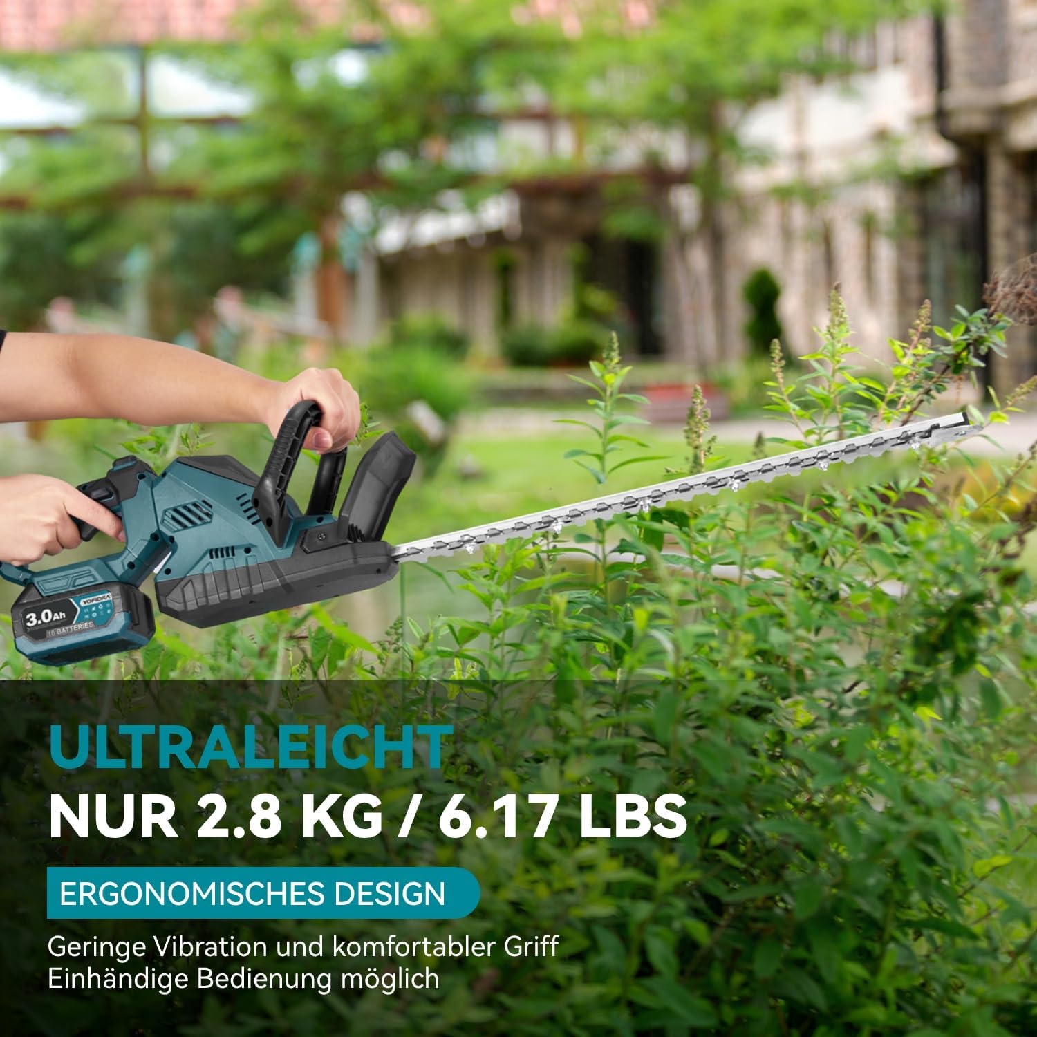 - Bearradh Coitcheann: Move the hedge trimmer in a smooth, sweeping motion along the hedge. The 22-inch double blades allow for precise and clean cuts, easily handling branches up to 20mm in diameter.